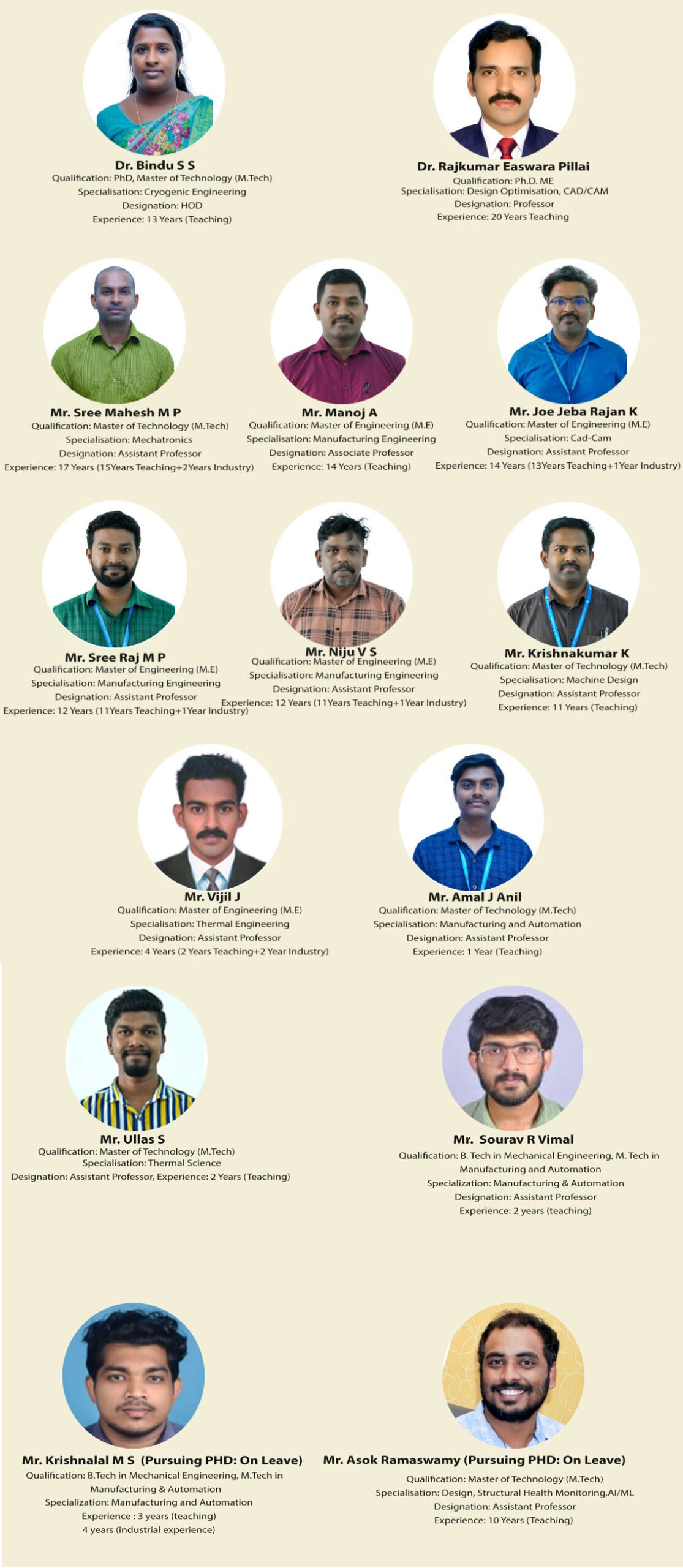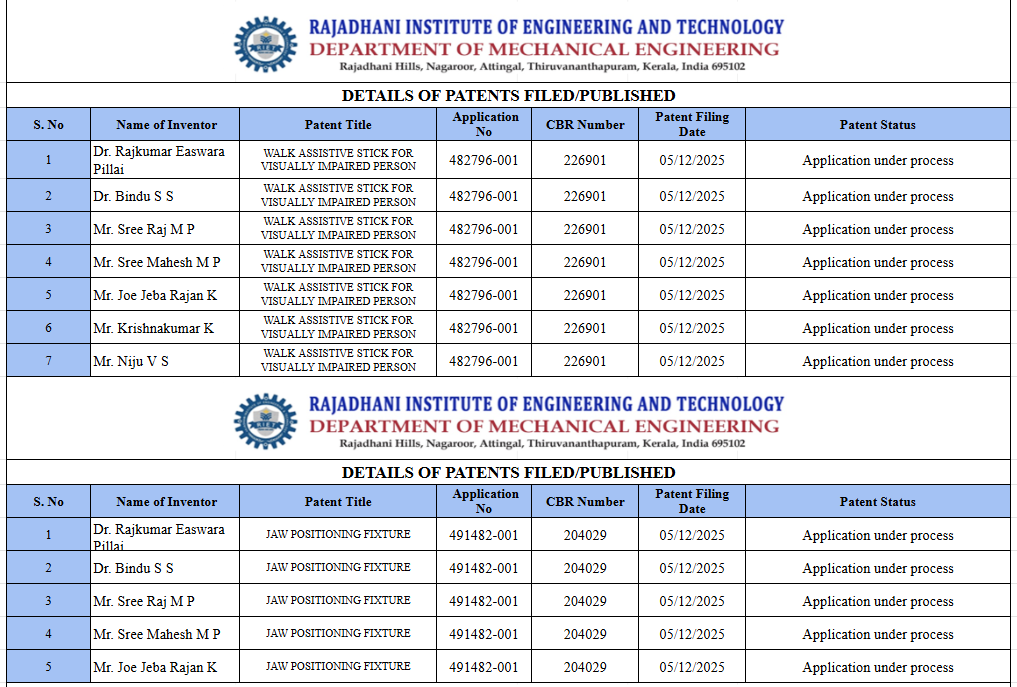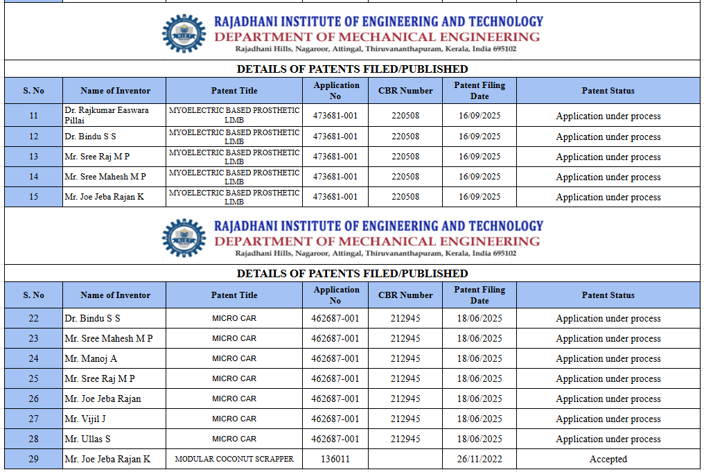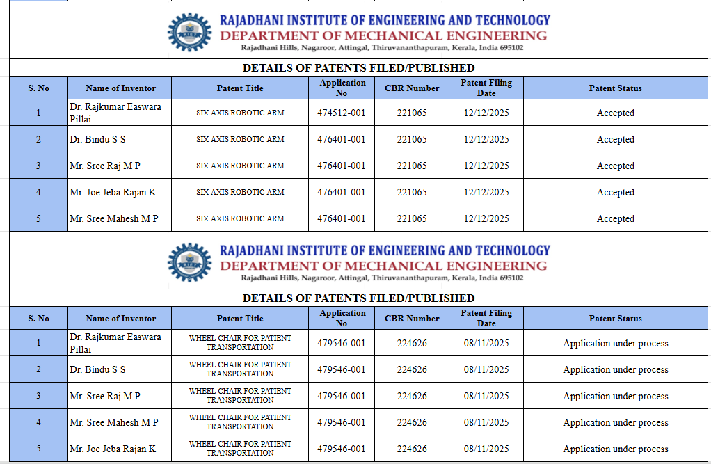 The Department of Mechanical Engineering is one of the pioneering departments of Rajadhani institute of engineering and technology established in 2009 with a vision of imparting quality education in mechanical engineering and allied domains by inculcating human values for social transformation. The Department of Mechanical Engineering at Rajadhani Institute of Engineering and Technology (RIET) stands as a cornerstone of academic excellence and innovation.